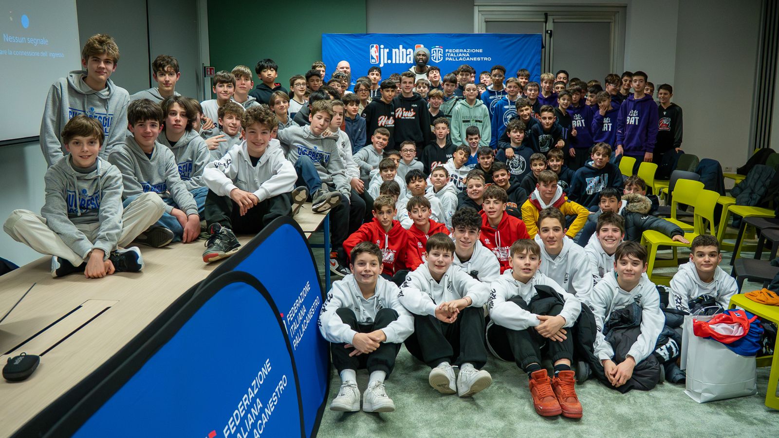 Si è svolto oggi pomeriggio, giovedì 22 gennaio, il sorteggio per l’abbinamento delle 30 franchigie NBA alle partecipanti della fascia Gold dell’Under 13 regionale. La terza edizione della JR.NBA WNBA Fip League ha ufficialmente definito gli accoppiamenti fra le società lombarde e le squadre della massima lega mondiale attraverso il sorteggio messo a punto dagli organizzatori. Dopo gli onori di casa del consigliere regionale Federico Karrer e dell’RTT Matteo Semoventa, il saluto del presidente del CONI Lombaria Marco Riva, e l’intervento del responsabile dell’Ufficio Gare Germano Foglieni, l’ospite d’onore Maurice Ndour ha risposto con grande disponibilità alle domande dei ragazzi presenti nella sala A del palazzo CONI di via Piranesi. Tanto interesse e tanta attenzione per il giocatore della Germani Brescia, che ha avuto anche un’esperienza NBA nella sua carriera professionistica: risposte profonde ed ispiratrici per l’atleta senegalese, poi a disposizione dei ragazzi per le foto di rito nella cerimonia della consegna delle maglie.